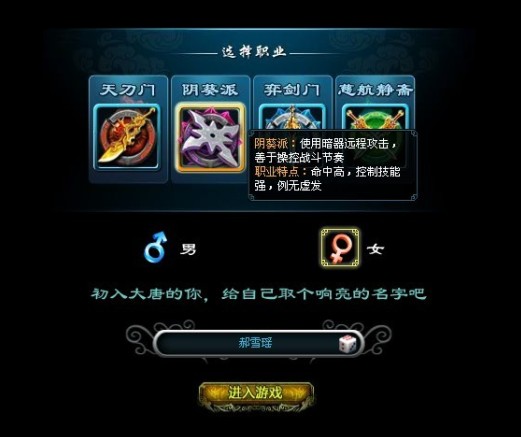 阴葵派,远程攻击。初级阶段:挂机抢怪容易,攻击输出高,PK强。高级阶段:高攻,PK王者。