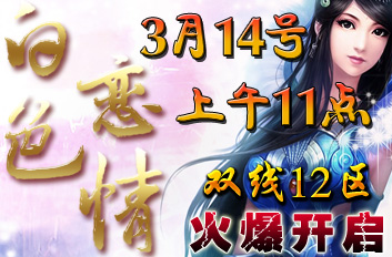 2012年3月14日11:00开启双线12区--"白色恋情"!丰厚的开服游戏活动,闪亮的游戏内容,无一不在期待您的参与! 还等什么,火速加入吧!!!