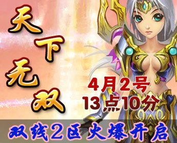 一起来玩8090天之刃吧,8090天之刃双线2服“天下无双”将于2012年4月2日下午13:10火热开启!丰富的开区活动,精彩的游戏内容,都等着您来参与!赶紧加入8090天之刃,一起打造一个属于我们共同的美轮美奂的玄幻世界!