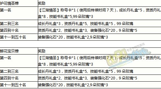 【活动内容】在活动期间,玩家通过赠送鲜花与收取鲜花获得魅力值,登上护花情圣榜(男生排行榜)与宝贝鲜花榜(女生排行榜),排名在前50名的玩家可以获得丰厚奖励!活动奖励将会在次日凌晨通过邮件发放。