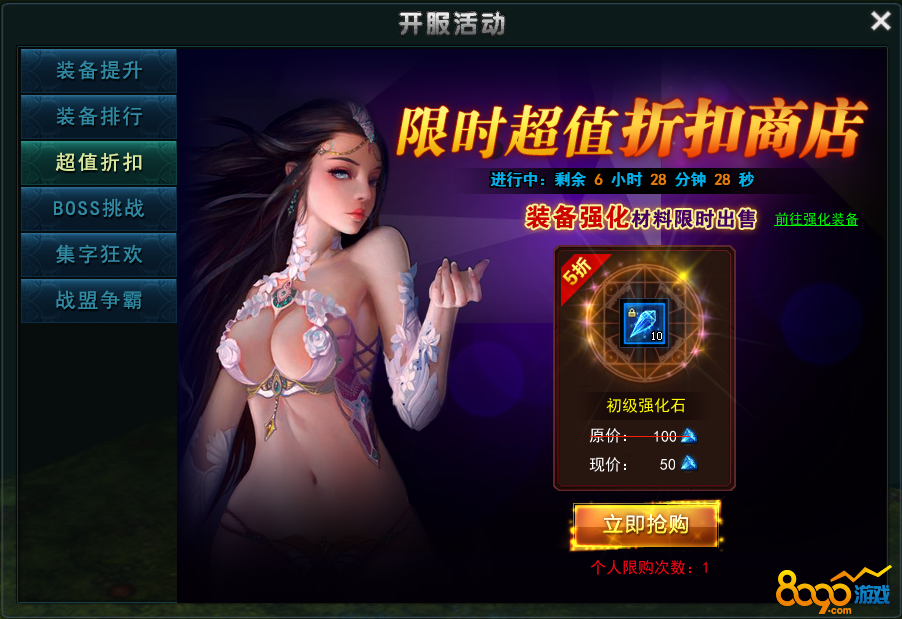 活动规则:活动期间每天都有超值折扣道具可购买,助您每日竞技排行中轻松取的胜利
