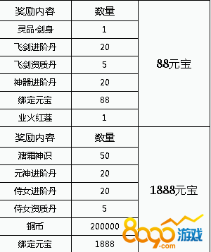 剑道仙语新服开启十二大开服活动迎接各位玩家的到来!花费88元宝,立即领取价值8888元宝大礼,即送神器业火红莲 灵品·剑身