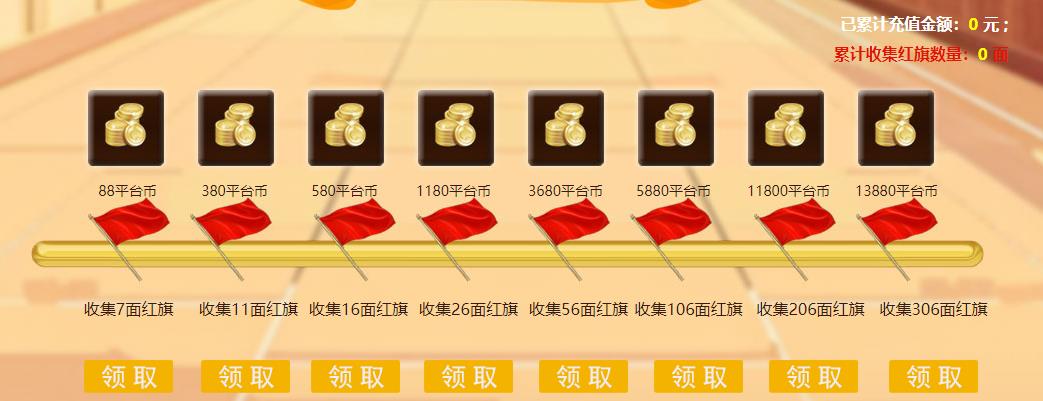 ③、活动期间累计充值满1000以上,可以直接领取6天的红旗。