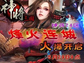 8090神将三国新区24服-烽火连城将于2013年5月29日9:00震撼开启。精彩即将上演,超乎想象的游戏体验正期待您的加入! 喜迎新服开启,8090《神将三国》已为您准备了丰富的开服活动助你在三国乱世中驰骋沙场、建功立业!