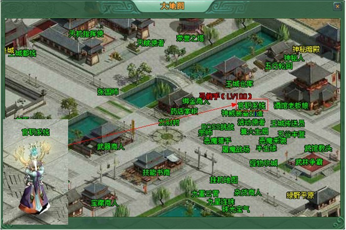 玩家等级到达50级,就可以在王城的官职系统NPC出开启官职,获得高额的属性提升,聘请获得受人敬仰的官职称号。
