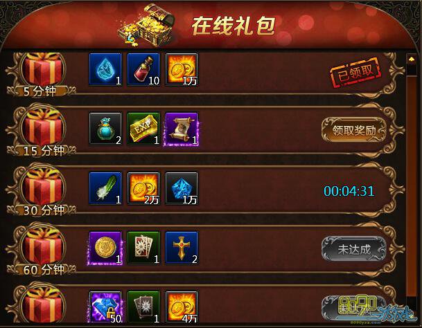 【活动内容】每天登录游戏,在线达到一定的时间就可以获得福利,在线时间越长福利越丰厚哦~