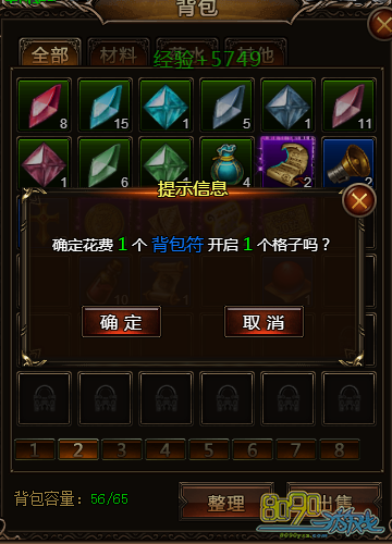 女神国度中点击主界面下方的背包,或者快捷键B即可打开背包,背包一共有8页,起初背包只开启36格,后面的格子需要玩家靠背包符开启,背包符可以通过登录奖励、等级礼包、目标系统、成长特惠礼包等方式获得,玩家也可以通过消耗钻石的方法快速开启格子。