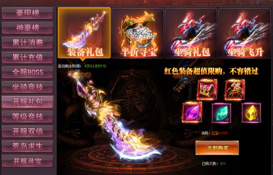 活动期间,玩家可在开服活动中购买开服折扣礼包,每种礼包仅限购买一次