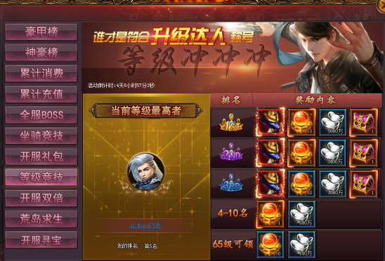 活动期间内,玩家等级排名越高,奖励越丰厚,活动奖励以邮件形式发送给玩家