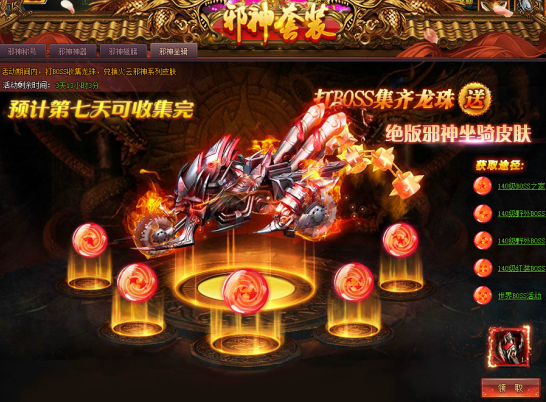 活动期间,玩家通过击杀指定BOSS收集龙珠可在活动界面兑换绝版外观