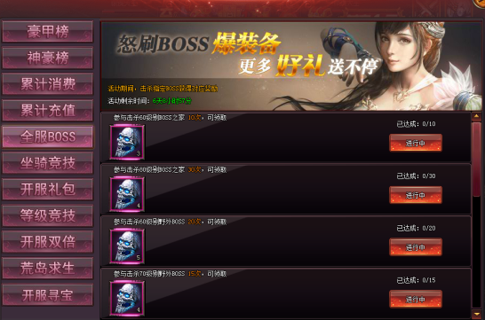 活动期间,玩家击杀指定BOSS即可在活动界面领取对应奖励