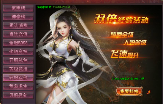 活动期间内,玩家挂机打怪可获得双倍经验值,飞速提升人物等级