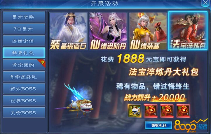 仙缘总战力达到8000:仙缘进阶丹*30、地煞真诀*3、1000魂丹*1