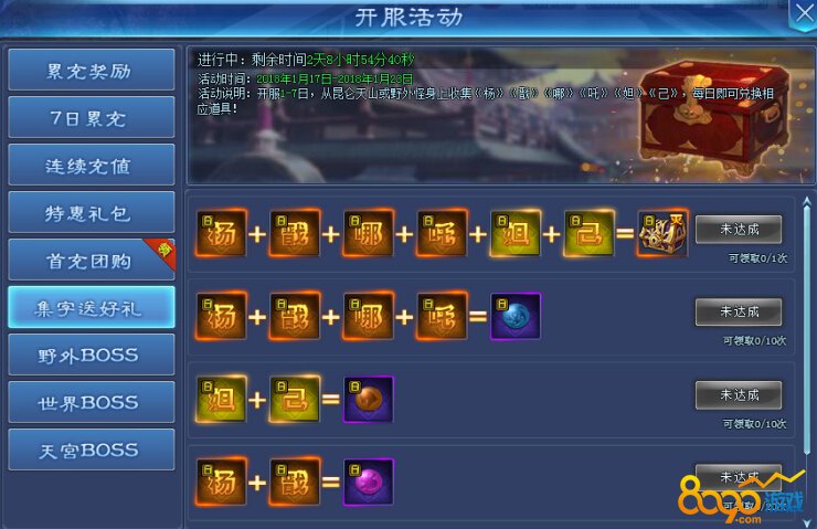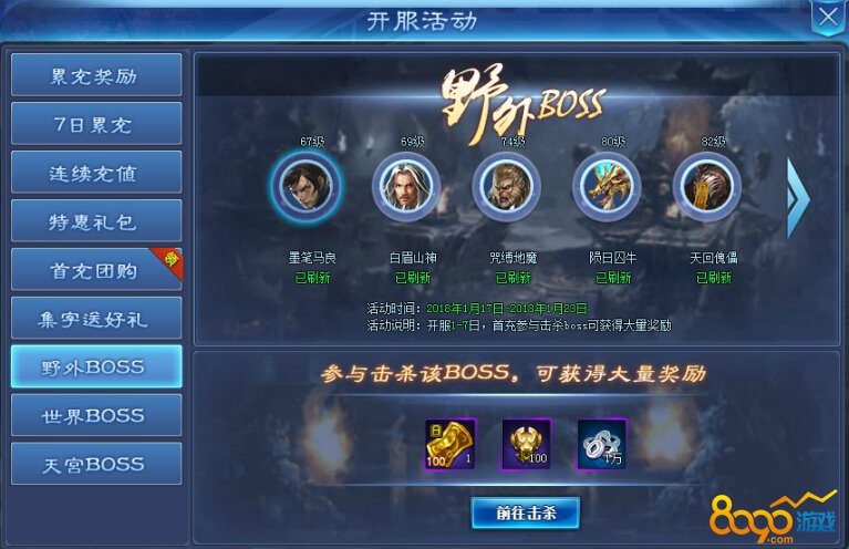 活动期间内玩家首次击杀野外BOSS即可获得大量奖励