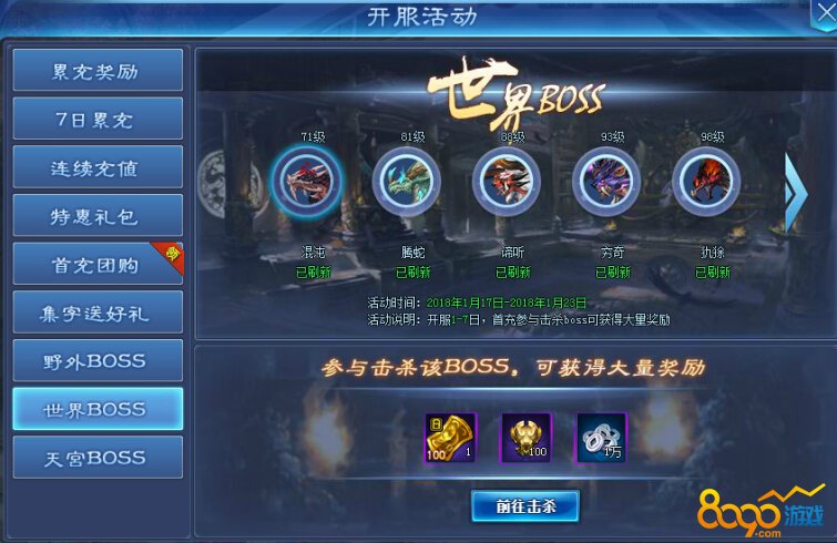 活动期间内玩家首次击杀世界BOSS即可获得大量奖励