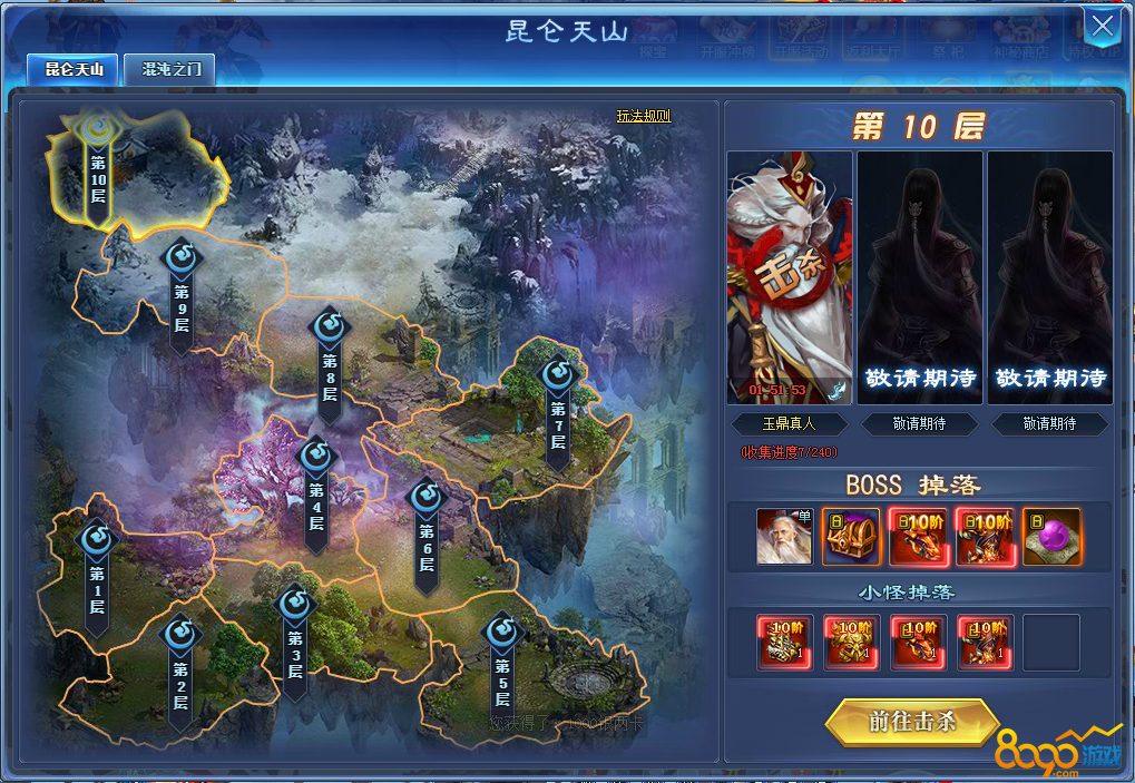 1、 昆仑天山新增第10层,道玄BOSS【玉鼎真人】登场!更高级的仙缘收集,快来第10层一探究竟吧!