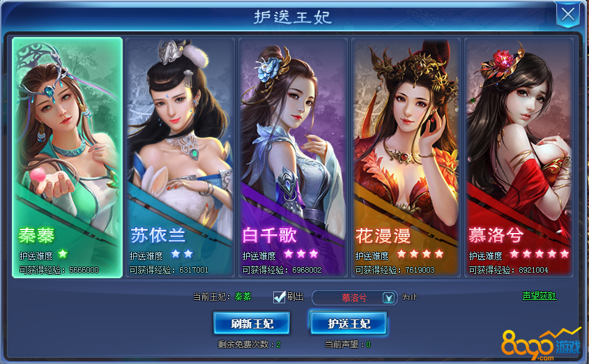 1. 王妃品质由低到高分为绿、蓝、紫、橙、红五种,品质越高,奖励经验越多。