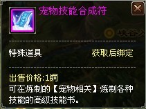 合成高级技能书需要:上个级别的技能书和“宠物技能合成符”