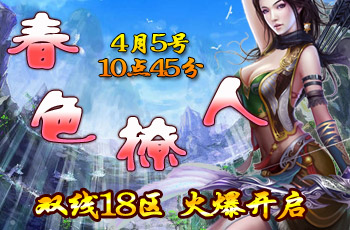 2012年4月5日10:45开启双线18区--"春色撩人"!丰厚的开服游戏活动,闪亮的游戏内容,无一不在期待您的参与! 还等什么,火速加入吧!!!