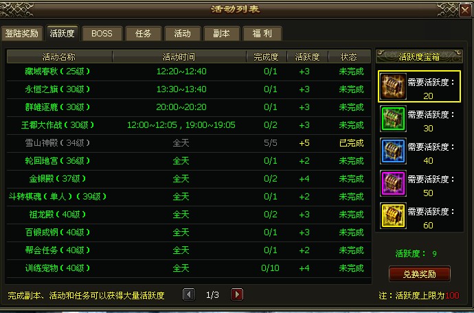 活跃系统你知道嘛?不要和我说你还不知道喔。每天副本和参加活动都可以获得相应的活跃值。活跃值可以兑换活跃度宝箱。