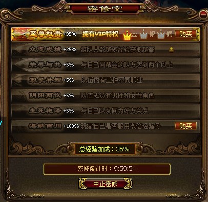 飘渺雪域密修系统怎么玩 密修系统全面分析介绍 密修系统, 也就是挂机系统. 密修可以每10秒获得经验和灵力,灵力可是升级技能必不可少的一项资源。由于密修时角色的姿势是坐在蒲团上的,因而密修得到一个俗称"蹲马桶",也有玩家叫“MX”! 下面说说密修系统的一些问题: 1. 经验计算: 先附上一张图: ![]() 由图可见,影响密修经验的有五项, 那密修经验是怎么计算的呢? 只身一人进入密修房间, 未使用双倍经验丹时候的获得的经验. 我把它称之为原始经验.经验计算的公式是:最终经验= 原始经验*(1+总经验加成) 举个例子说明:如果你的原始经验为50, 除双倍经验丹外, 其他各项的经验加成30%, 那么吃了双倍之后的总经验加成是100%+30%=130%, 那么,最终经验=50*(1+30%+100%)=115. 2. 一些你可能未注意的细节: 1. 密修系统是副本类型系统, 到达时间后,会被传出房间. 2. 密修系统的众志成城是需要两个人以上才发挥作用的,每增加一个增加5%,尽量组满. 3. 进入密修后,把队里的人都加上好友, 要全队都是好友,才会有"生死泽袍"的满好友加成. 可能这些老鸟们都已经知道, 但愿对新人有些许帮助啦!@@~~ |