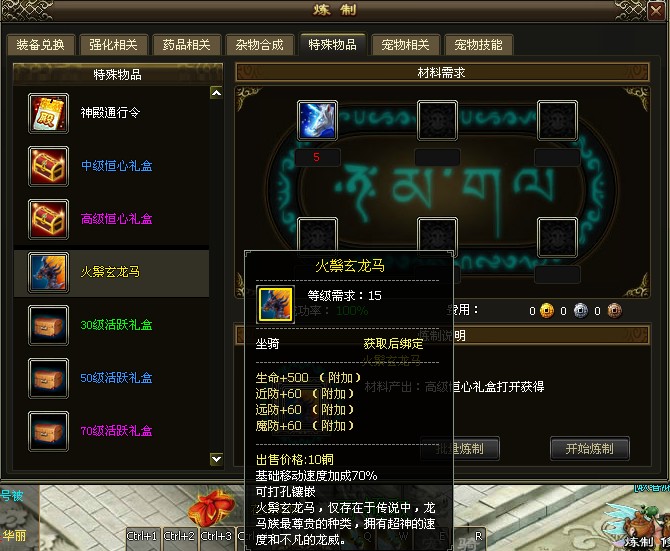 飘渺雪域坐骑火鬃玄码怎么获得 火鬃玄码攻略介绍 全新坐骑火鬃玄龙马很是吸引玩家眼球。不过,坐骑也有快慢之分,好坐骑可不是那么容易就能得到。下面就和大家一起来看看在游戏中如何捕获【火鬃玄龙马】这样的极品坐骑! ![]() 众所周知,宝马配英雄,8090飘渺雪域中想要拥有火鬃玄龙马 各位大侠首先要收集坐骑精魂这等神奇之物。只要你拥有5个坐骑精魂,那么就可以在炼制系统中的特殊物品里炼制出极品——火鬃玄龙马。 ![]() 坐骑精魂可以通过开启高级恒心礼盒获得,而高级恒心礼盒是由中级恒心礼盒开出的5个高级恒心奖章合成出来的。同样中级恒心礼盒是由初级恒心礼盒开出的5个恒心奖章合成而来的。最后大家又要问了,那初级恒心礼盒又是怎么来的呢!其实初级礼盒获得十分容易,只要玩家在线每满5分钟、1小时、3小时、5小时就可以从在线奖励中领取! 其实说白了,只要多挂机,在线时间长一点,就能获得梦想的坐骑了。