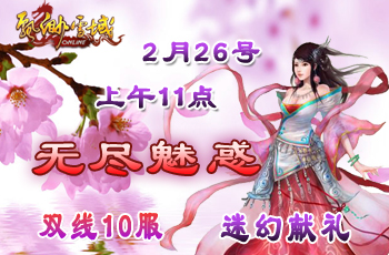 2012年2月26日11:00开启双线十区--"无尽魅惑"!丰厚的开服游戏活动,闪亮的游戏内容,无一不在期待您的参与! 还等什么,火速加入吧!!!