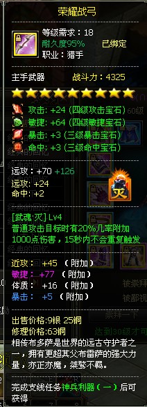 说明:金色的主手武器、副手武器和胸甲装备,强化到9星时会出现特殊属性——武魂。