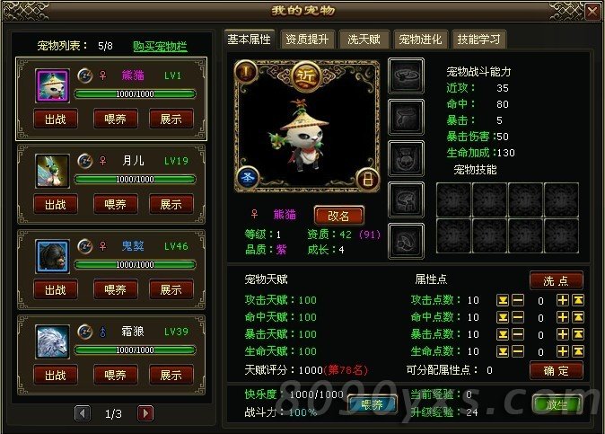 紫色 商城购买,祈福活动,升级宠物资质上限