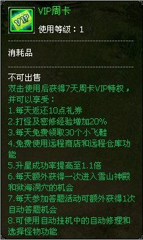 【VIP会员特权】使用VIP卡后,可以获得VIP特权,获得超值VIP会员的游戏体验