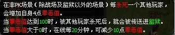 3. 当罪恶值达到100时,被其他玩家杀死后,就会被传送进监狱