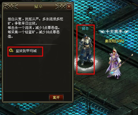 当罪恶值降低到0时,与狱卒对话即可离开监狱,回到甲玛城重获自由啦!如图: