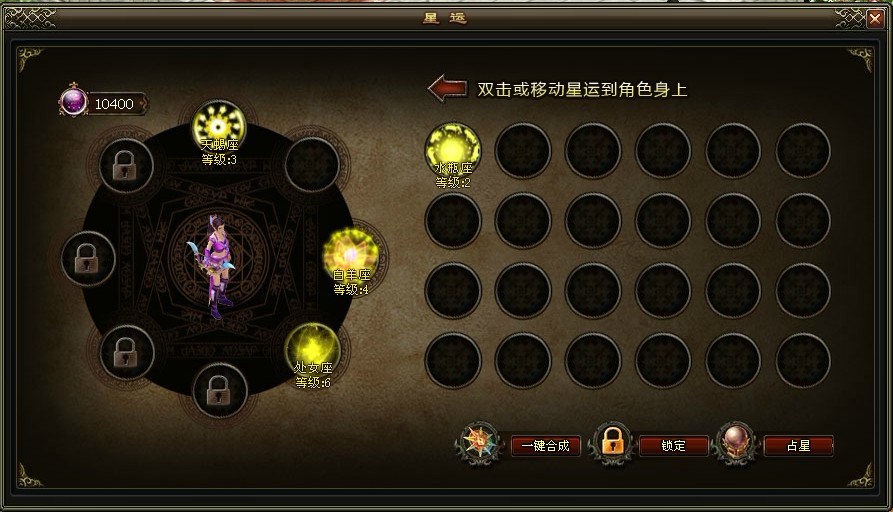 点击一个星座鼠标拖动到另一个星座上面,将会提示星座增加经验。