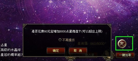 点击“一键占星”,按照高到底的顺序进行占星(即先开始高级别的占星,若星魂值不足则停止一键占星)
