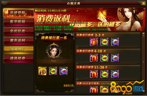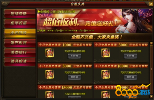 最后一档参与奖励,参与满足消费100元宝即可立刻领取,每天可以领取一次