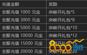 活动内容:每天首冲可领取全服充值到固定额度的奖励,全服参与充值者可领取奖励(玩家自己需充值一定额度才可领取)