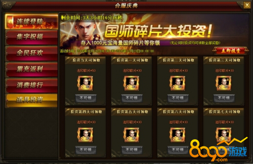 *玩家无论何日开始投资都可领取7天奖励(合服活动结束后通过每日登录时的领取界面发送)