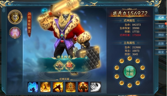 l 不同式神作战特性不同,在激活式神专享天赋后,金轮狮王可为玩家抗伤害,九尾狐妖则可魅惑怪物,并造成海量伤害。