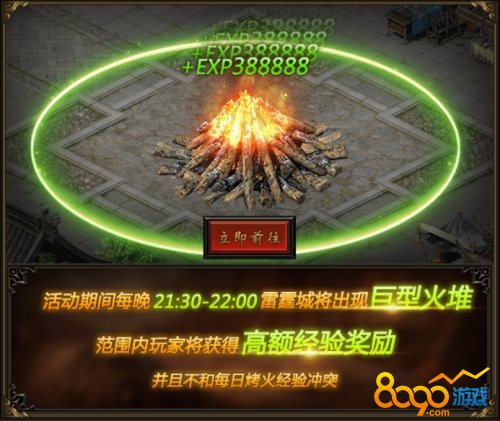 b.活动期间每晚21:30—22:00,在雷霆城将会出现巨型篝火,在篝火范围内玩家将获得海量经验奖励,并且不和每日烤火经验冲突。