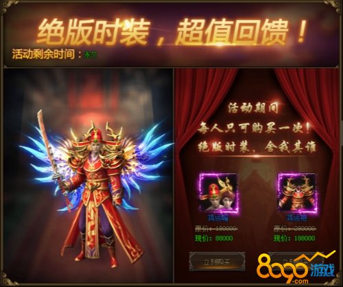 b. 活动期间内,可购买炫酷绝版时装鸿运袍,鸿运帽,每人只可购买一次,机不可失失不再来!