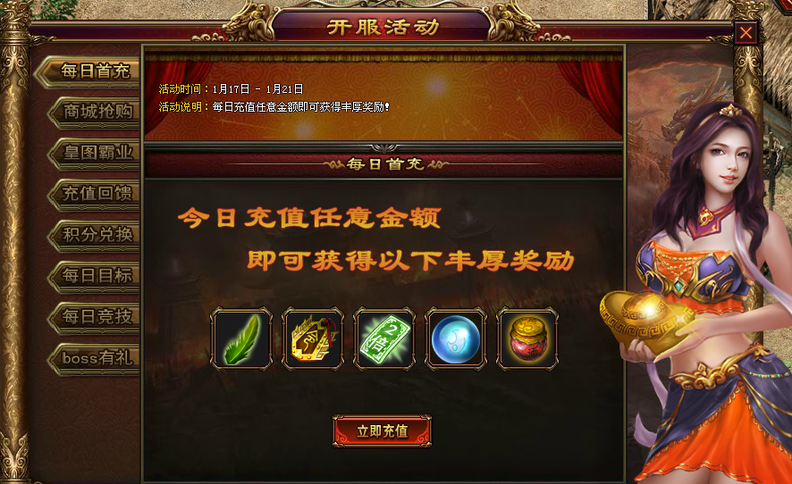 活动内容:每日充值任意金额即可获得丰厚奖励