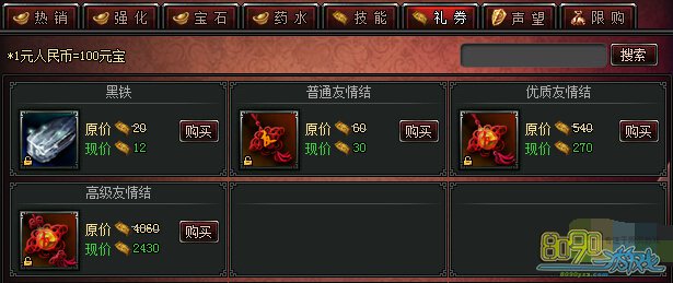 商城商品中,最著名的就是VIP了。进入商城,有三个VIP等级可以供玩家购买,分别是青铜、白银、黄金三个等阶,价钱相差也很大。譬如青铜VIP是800元宝一周,白银VIP是4800元宝一个月,黄金VIP是24800元宝一个季度。所以玩家如果要购买的话,第一个要买的就是VIP。