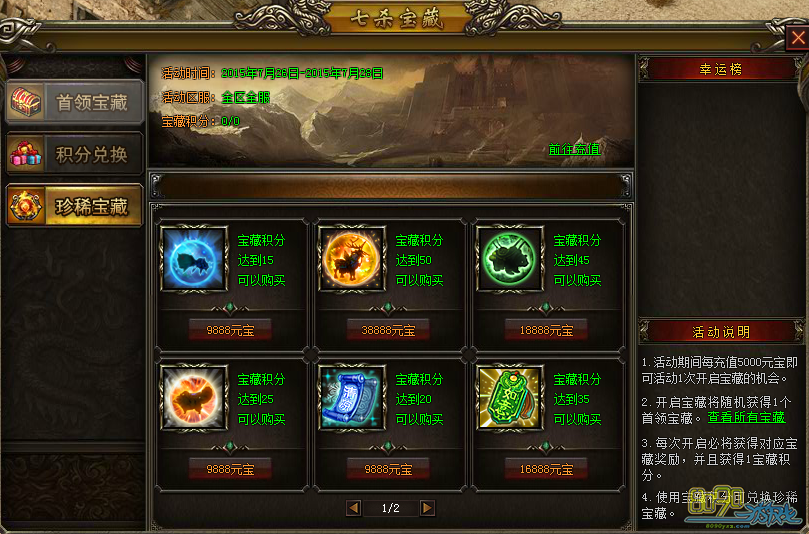 • 七杀7月26日-28日七杀宝藏活动收集宝藏积分兑换极品宝藏