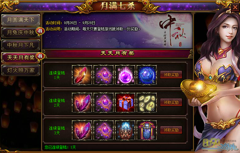 活动说明:活动期间,每天只要登陆游戏就领取一份奖励。