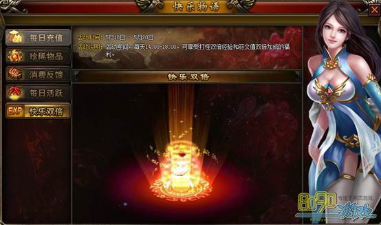 【活动说明】:活动期间,每天14:00-18:00,可享受打怪双倍经验和符文值加成的福利!