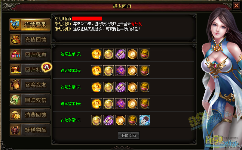 【活动说明】:连续登陆天数越多,可获得越丰厚的奖励