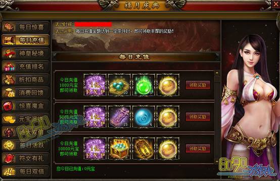【活动说明】:每日充值金额达到一定条件时,可领取一份奖励。