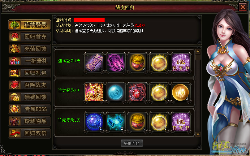 【活动说明】:连续登陆天数越多,可获得越丰厚的奖励