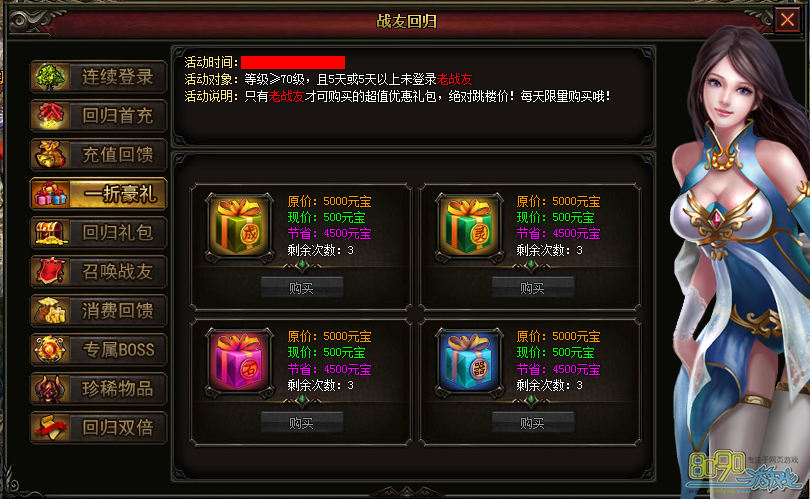 【活动说明】:只有老战友才可购买超值优惠礼包,绝对跳楼价!每天限量购买哦!