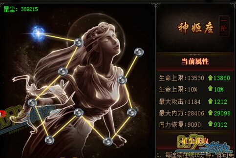 神姬座是高级星辰,玩家们如果不断升级的话,就可以获取到大量的属性加成,技能效果也会越来越强哦,所以建议大家先去获取足够的星尘哦,平时在线10分钟的话,就能获得了,当然,如果你是vip玩家的话,那获取到的自然就会更多了~